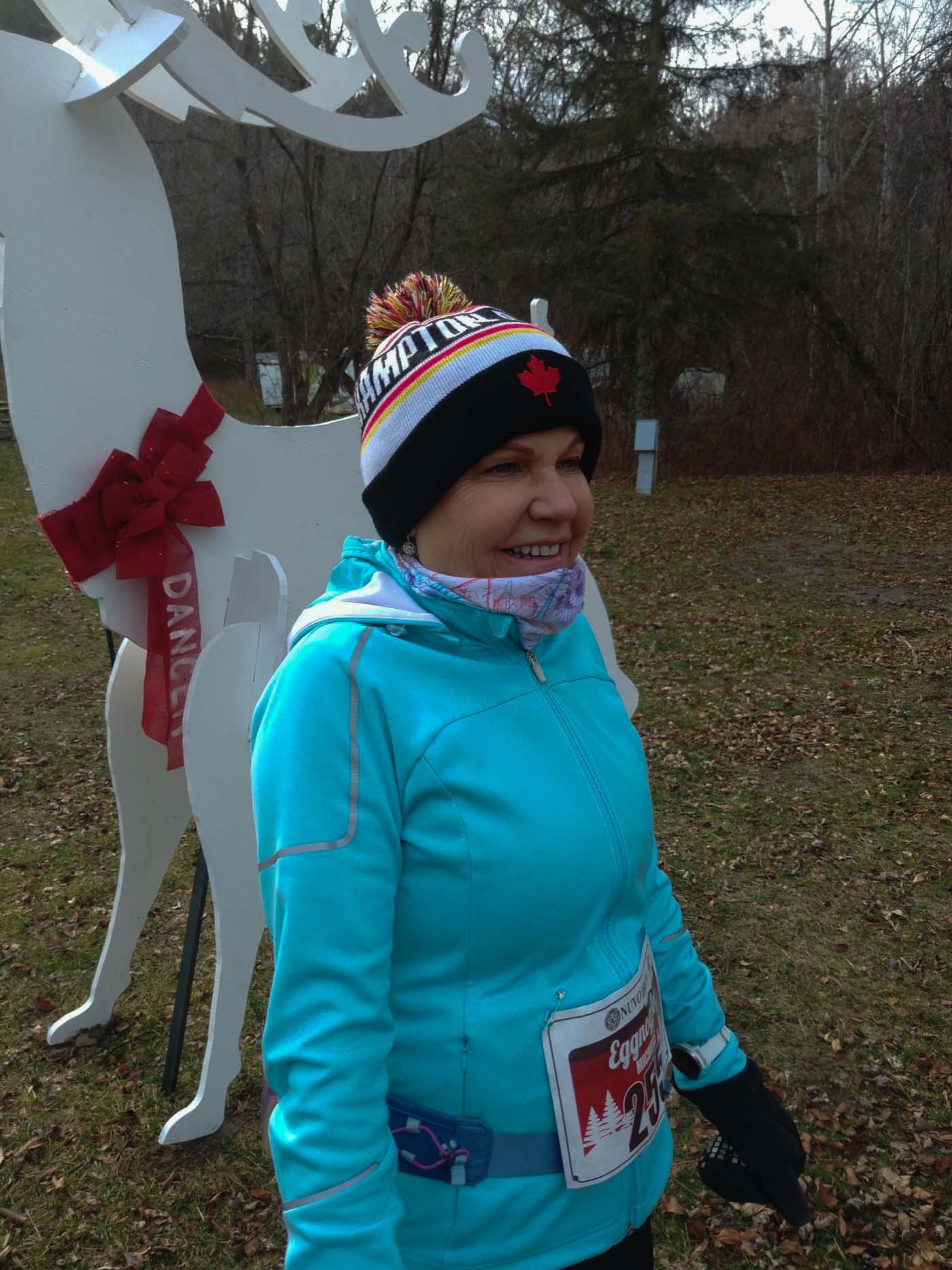 Michelle and reindeer friend Dancer at the Egg Nog Jog, December 4, 2022.
